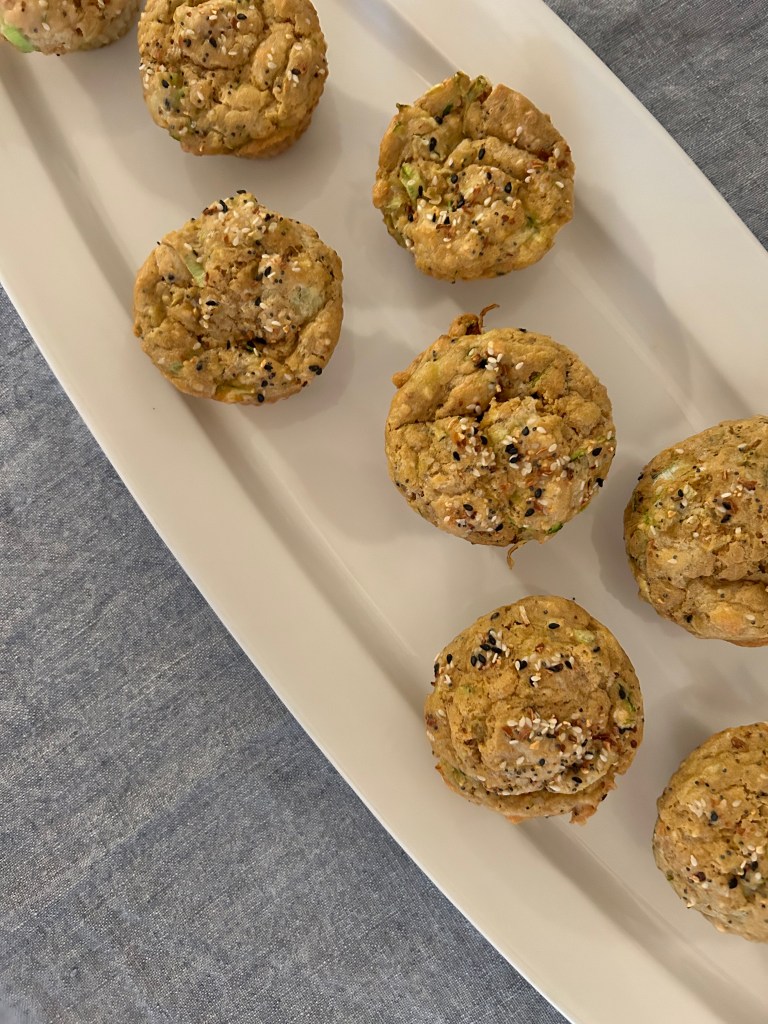 I love the effect shredded zucchini has on baked goods. I love making zucchini bread but I find muffins easier for on the go. Insert this savory muffin recipe- born out of a craving for zucchini bread and some leftover ingredients in my fridge.