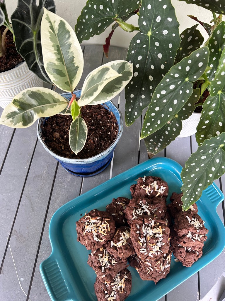 If you can’t tell I really like putting bananas in my cookies… I have a few recipes for cookies that include bananas including my Cocoa Peanut Butter Banana Cookies and my all time favorite Brown Sugar Banana Caramel Cookies. These are an extra chocolatey banana cookie. When you bite into them they are unquestionably chocolate followed by a wave of banana and ending with the taste of coconut. They are tropical with the comforts of chocolate- the perfect summer treat!