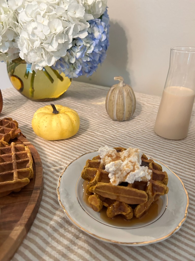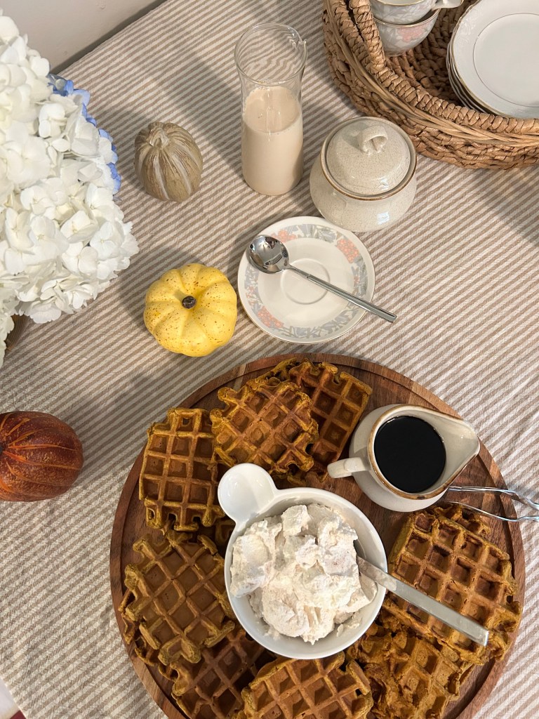 Welcome November with these Pumpkin Waffles and pair them with this delicious Chai Spice Whipped Cream!
