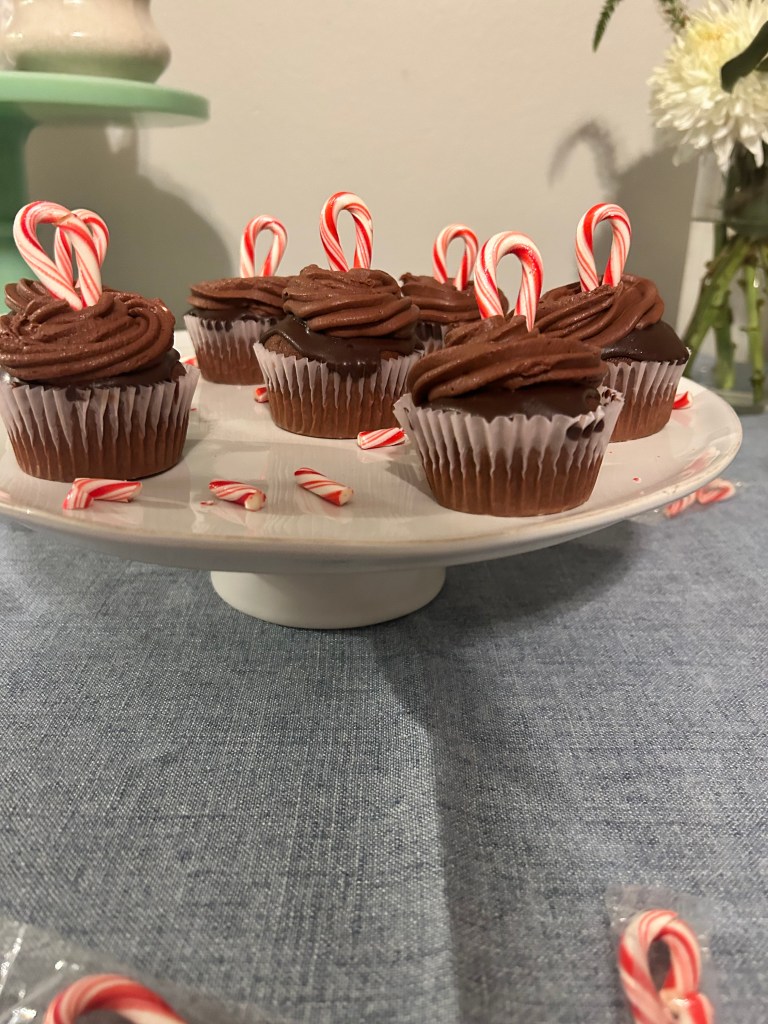 - Top each cupcake with a candy cane before serving