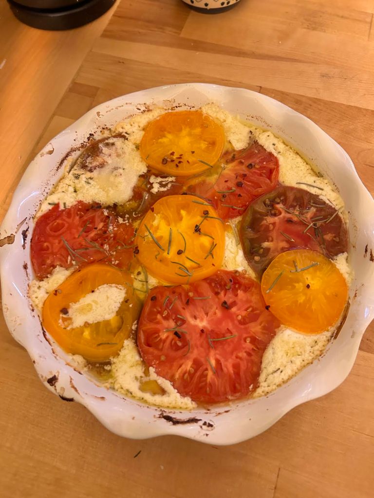 - 2-3 heirloom tomatoes (or tomatoes of choice) cut into thin slices