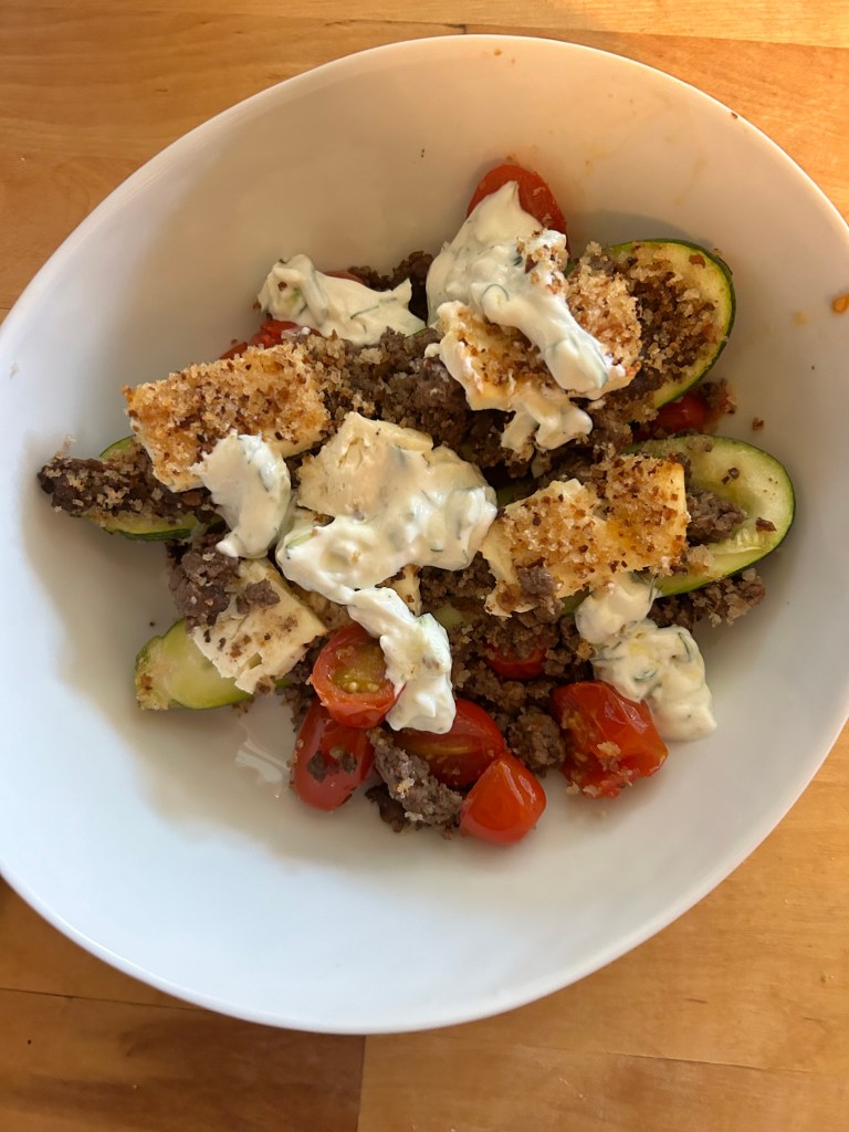 - While the zucchini boats bake make the tzatziki